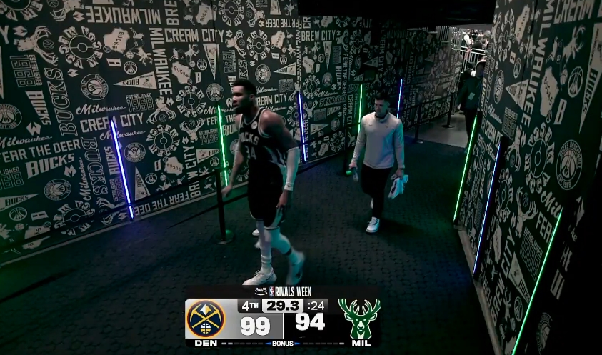 赛事直播-沮丧!字母哥小腿不舒服啊 走去球员通道又回了替补席!